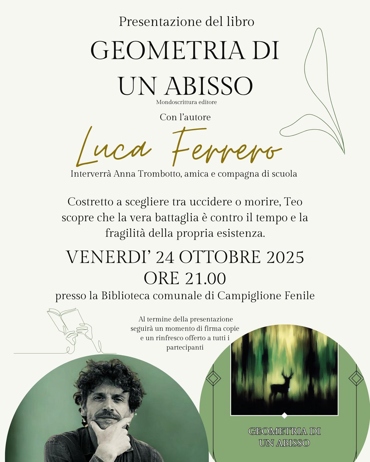 Presentazione del libro GEOMETRIA DI UN ABISSO, con l’autore Luca Ferrero